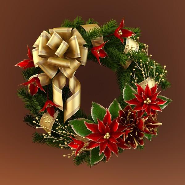 This is a model of a Christmas wreath modeled in 3ds Max 2009. It is rendered using V-Ray. Gamma 2.2. It includes shaders and textures. ColorCorect is required for use of V-Ray materials for this model.