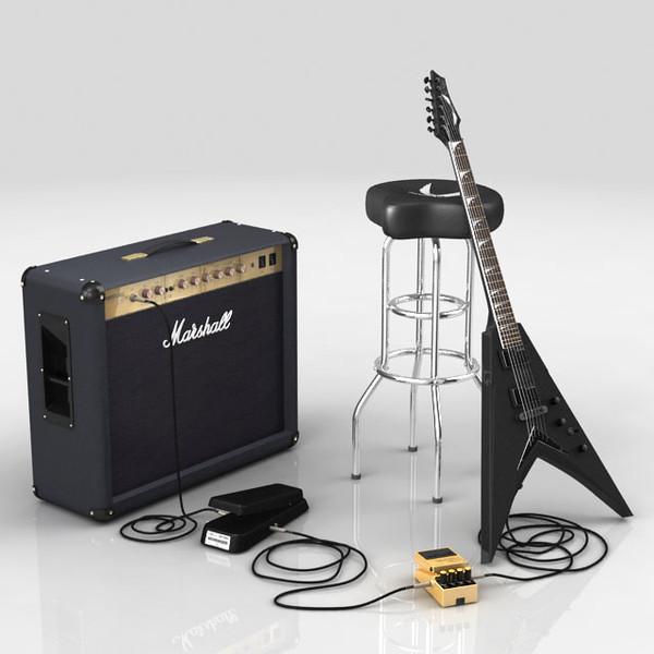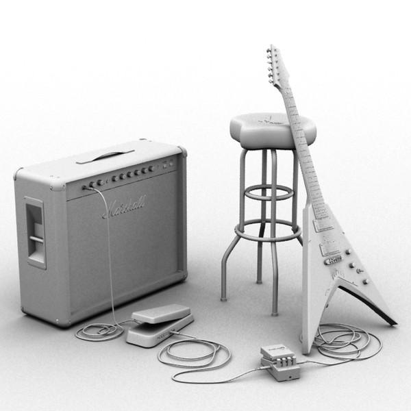 A collection of heavy metal Guitar, Amplifier and effect pedals. Made with 3ds Max 2010 and available in other formats.