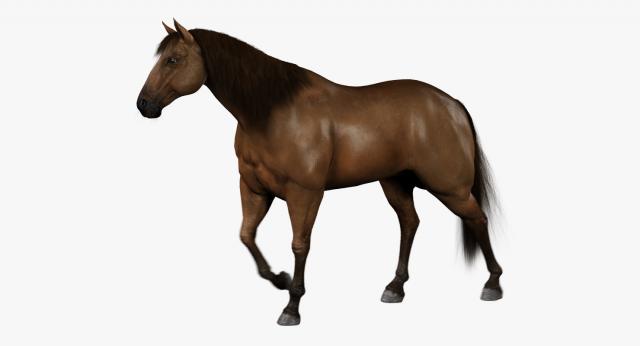 High Detailed Photorealistic Horse (Brown Color); FULLY RIGGED AND ANIMATED