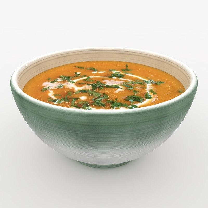 Realistic 3D model of a lentil soup.